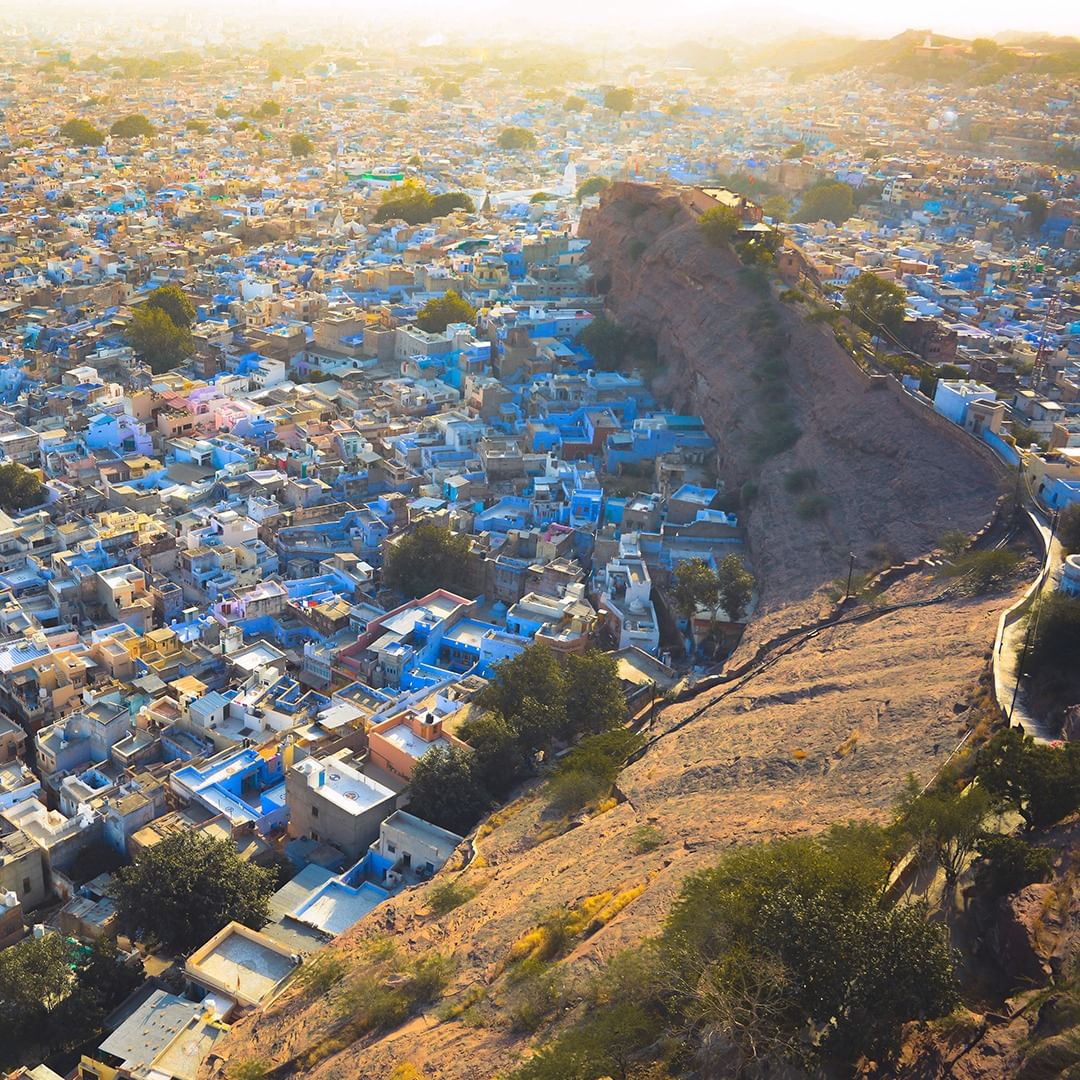 bleue. Déjeuner à l'hôtel suivi d'une visite du majestueux fort de Meherangarh, du mausolée de marbre blanc Jaswant Thada et de la vieille ville aux maisons bleues.